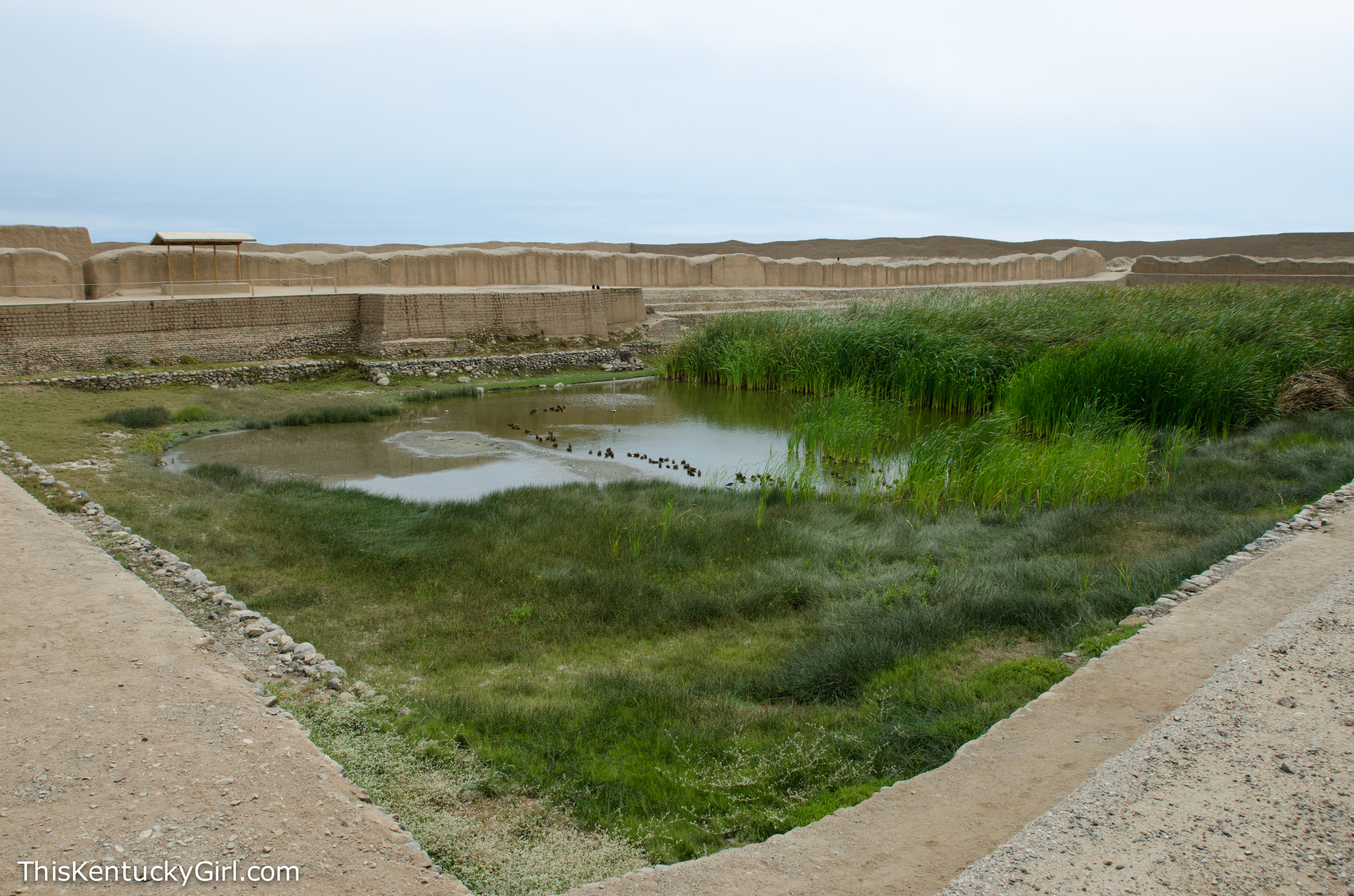 A taxi driver got out of his car parked near what we guessed to be the entrance to the ruins. He told us that he could drive us to all four different sites around Trujillo, but we weren’t sure we were up it, and told him we’d check out Chan Chan on our own first. Little did we know it was about a 1-2 kilometer walk from the main road. At least we had some banana chips (my favorite snack since this trip began) and water with us. We probably should have gotten a guide, or even one of the books that we saw one of the guides reading to those she was leading around… But we didn’t. Now that we’re nearing the end of our trip, we’re content to explore on our own and look things up afterwards if we’re so inclined (which I usually am).